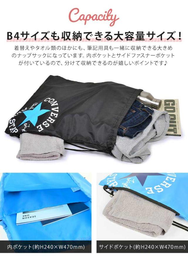 ナップサック 男の子 コンバース オールスター converse ジュニア キッズ 小学生 女の子 ジムバッグ ジムサック 体操服入れ 体操服袋 体操着入れ リュックサック リュック 軽量 ポケット 大人 黒 紺 かっこいい シンプル 遠足 学校 通学 中学生 スポーツ メンズ レディース