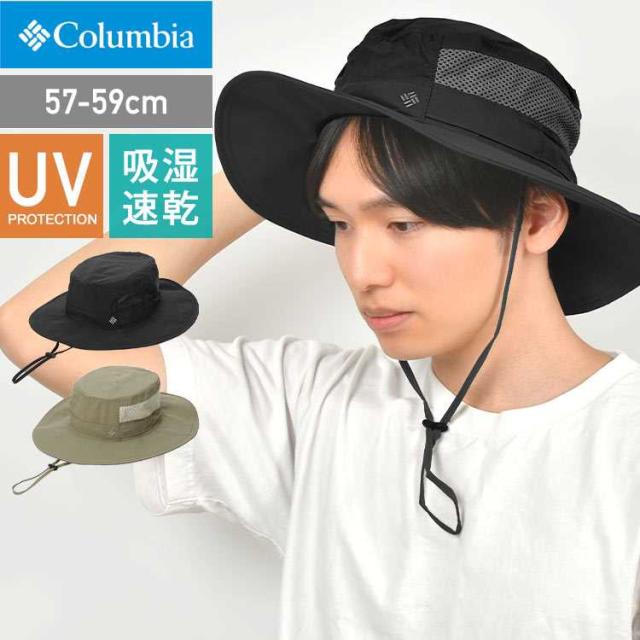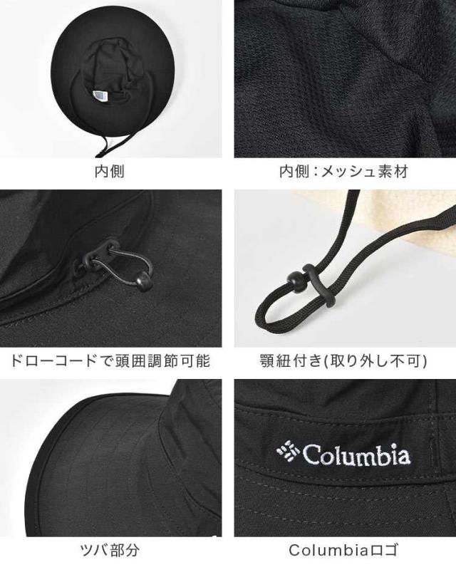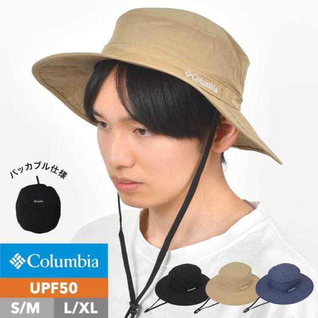 サファリハット つば広 Columbia コロンビア PU5529 メンズ レディース 大きいサイズ 日よけ 帽子 UVカット 折りたたみ 裏メッシュ ボンバークレストパッカブルブーニー アドベンチャーハット 紐付き UPF50 熱中症 紫外線対策 黒 ベージュ ネイビー 登山 キャンプ アウトドア