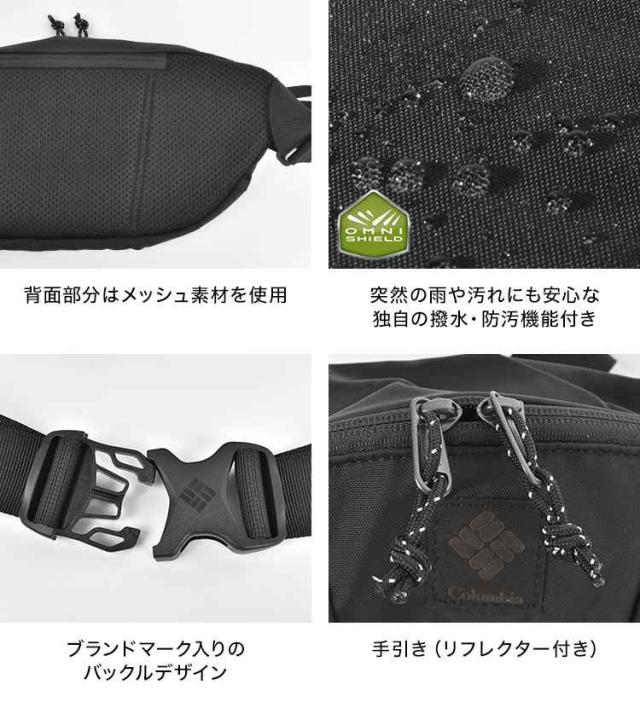 ボディバッグ コロンビア Columbia PU8666 パナシーア メンズ レディース 撥水 ショルダーバッグ 斜めがけ 旅行 アウトドア ブラック 黒 ベージュ ネイビー グレー 総柄 おしゃれ 丈夫 軽量 大容量 ヒップバッグ ウエストバッグ ウエストポーチ カバン フェス ハイキング