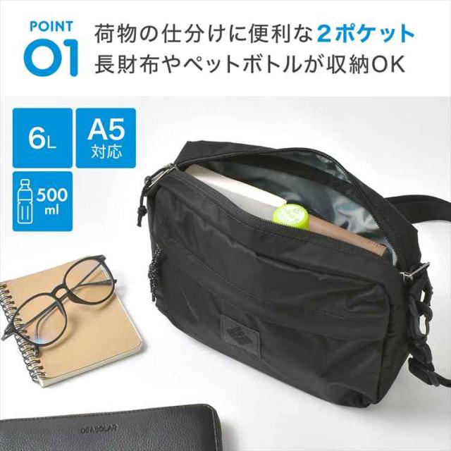 Columbiaブランド独自の撥水機能OMNI-SHIELD(オムニシールド)に、柔らかい生地感に優れた耐久性を併せ持つ、ナイロン素材を使用したショルダーバッグ。A5手帳や500mlペットボトルがすっきり収まる、ちょっとしたお出かけにぴったりのサイズ感。日常使いはもちろん、フェスやキャンプなどアクティブなシーンにも活躍。シンプルなロゴデザインで、性別や年齢を問わず使いやすいショルダーバッグです。