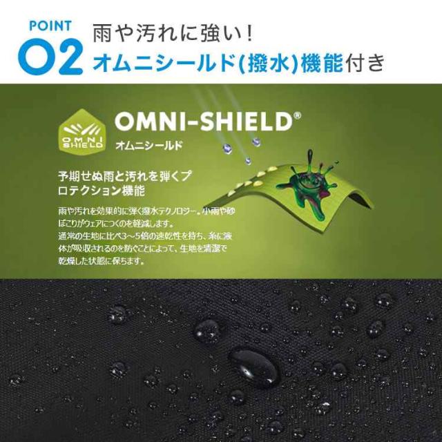 ワンマイルのお出かけにちょうど良いヒップバッグ。コンパクトに見えて長財布や500mlペットボトルを収納できます。ブランド独自の撥水機能「OMNI-SHIELD(オムニシールド)」を採用し、柔らかい生地ながら優れた耐久性を持つ高密度織りのナイロン素材を使用しています。シンプルなデザインで、男女問わず使えるので家族と一緒にシェアできるヒップバッグです。