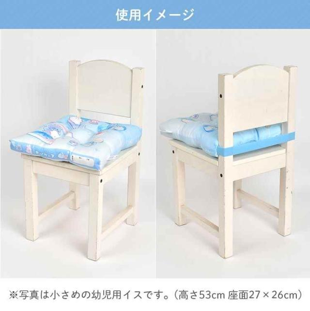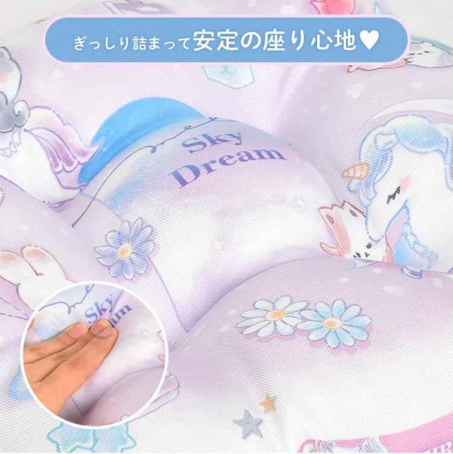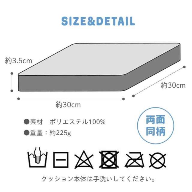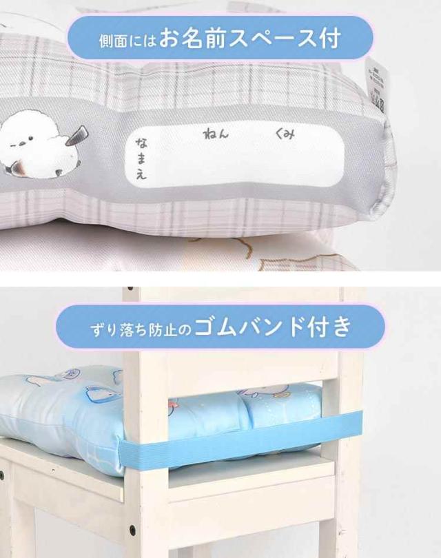 中身がぎっしり詰まった安定の座り心地。 学校のイスにもぴったりなサイズのクッション! かわいいデザインがいっぱいでどれにするか迷っちゃう♪ 側面に名前を書くスペース&ズレ防止のゴムバンドつき!