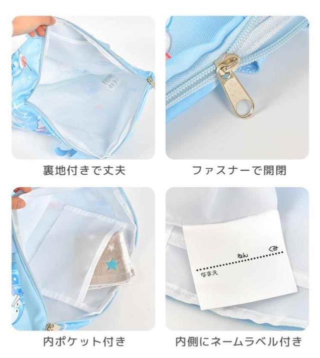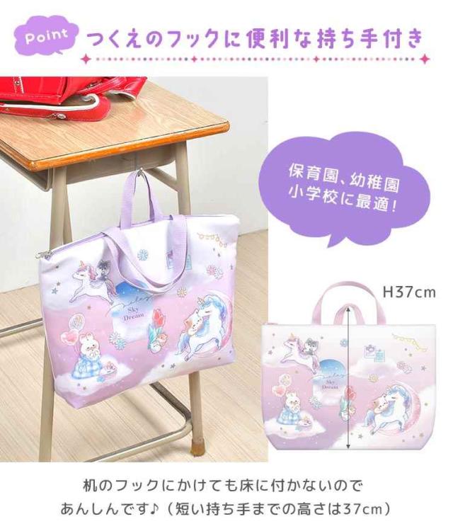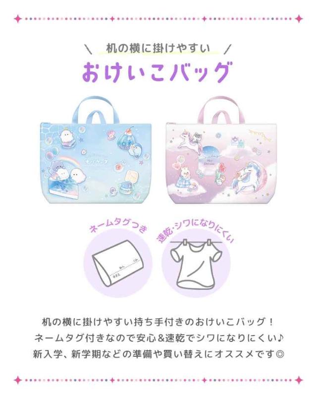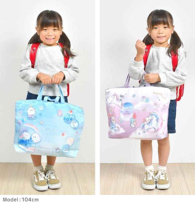 オバケーヌやユニコーンのキャラクターがふんわりファンシーでかわいい♪机の横に掛けやすい便利な持ち手付き!ネームタグ付きなので安心&速乾でシワになりにくい◎内ポケット付きで小物もすっきり収納。新入学、新学期などの準備や買い替えにおすすめです。