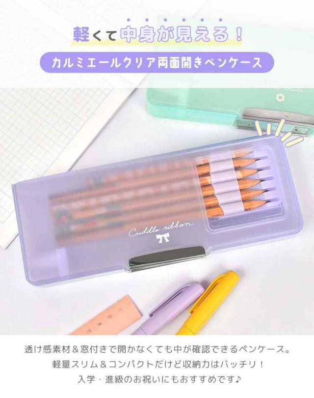 Details 【カルミエールクリア両面開きペンケース】 窓付きで開かなくても中身が見える!ワンポイントデザインと透け感がかわいい軽量のペンケース。鉛筆削りや時間割シールなど定番の機能もバッチリ!荷物が多いお子様にも嬉しい、ランドセルにぴったり収まるコンパクトサイズです。鉛筆6本や油性ペン、三角定規などもしっかり収納◎新入学・新学期の準備におすすめです。 品番 125061/125062 サイズ 約H85×W220×D28mm 重量 約200g 素材 カバー/PVC(中芯/PET)、本体/ABS、ペンホルダー/PE、鉛筆削り/PP,AS 生産国 中国 ご注意 ※表記サイズより、多少の誤差があることがございます。 ※商品の画像はできる限り実物に近づけるよう配慮しておりますが、お使いのモニターやご覧になる環境によりましてはカラーの見え方に差が出る場合がございます。ご了承くださいませ。 関連キーワード 筆入れ 三角定規 15cm定規 分度器 油性ペン 入る 初めて 進級祝い 新一年生 えんぴつホルダー 6本 時間割表 えんぴつ削り ステーショナリー 便利 両面 透ける クリアカラー オーロラ ファンシー 無地 ノンキャラ 中身が見える 忘れ物防止 削り忘れ 防止 パープル 緑 筆箱 箱型 ペンケース ふでばこ 箱型 韓国 クリア 一年生 透明 無地 コンパクト 軽量 両面開き マグネット 新学期 筆記用具 鉛筆 ホルダー 鉛筆削り 付き 紫 ミント 進級 入学祝い 両開き ペン入れ 文具 1年生 新入学 低学年 高学年 大容量 ワンポイント カルミエール 窓付き 中身が見える 軽い 便利 スリム 使いやすい 文房具 5歳 6歳 7歳 8歳 9歳 10歳 小学 1年 2年 3年 4年 5年 6年 一年 二年 三年 四年 五年 六年 生 小学校 小学生 保育園 保育所 幼稚園 先生 学生 学校 入園 入学 準備 入園準備 入学準備 通園 通学 子ども 子供 こども キッズ ジュニア 娘 孫 女性 女子 女の子 ガールズ girl バースデー 誕生日 プレゼント プチ ミニ ギフト お祝い お返し 粗品 景品 送別会 イベント 母の日 父の日 クリスマス クリスマスプレゼント バレンタイン チョコ以外 ホワイトデー おしゃれ オシャレ お洒落 かわいい 可愛い カワイイ シンプル | |||||||||||||