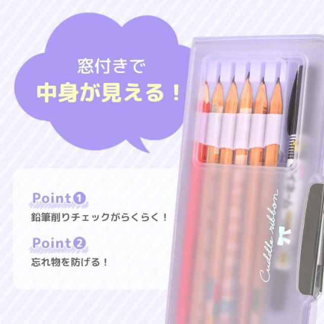 窓付きで開かなくても中身が見える!ワンポイントデザインと透け感がかわいい軽量のペンケース。鉛筆削りや時間割シールなど定番の機能もバッチリ!荷物が多いお子様にも嬉しい、ランドセルにぴったり収まるコンパクトサイズです。鉛筆6本や油性ペン、三角定規などもしっかり収納◎新入学・新学期の準備におすすめです。