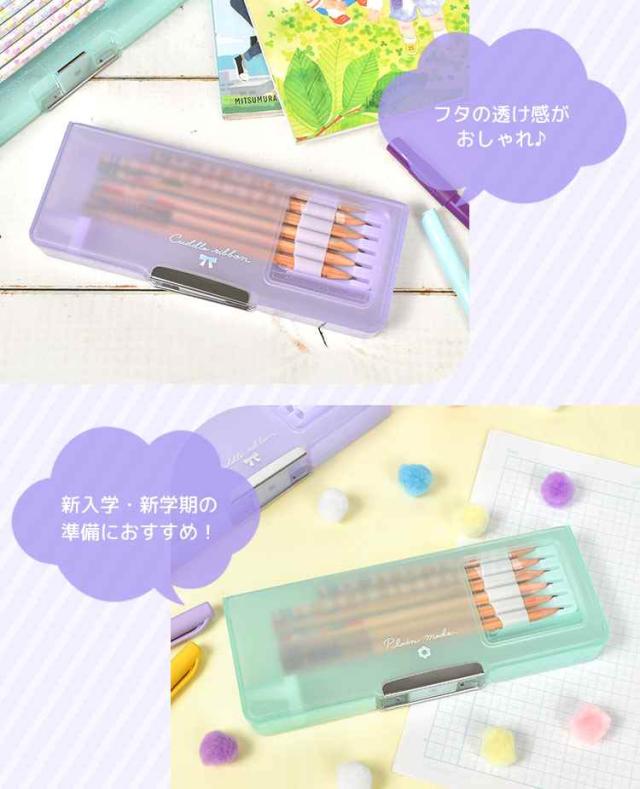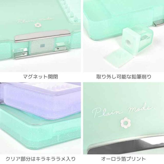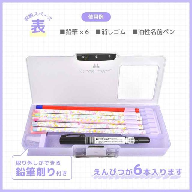 筆箱 小学生 女の子 箱型 ペンケース ふでばこ 箱型 韓国 クリア 小学校 一年生 女子 かわいい おしゃれ 透明 無地 コンパクト 軽量 両面開き マグネット 入学 準備 新学期 筆記用具 鉛筆 ホルダー 鉛筆削り 付き 子供 キッズ シンプル 紫 ミント 進級 入学祝い プレゼント
