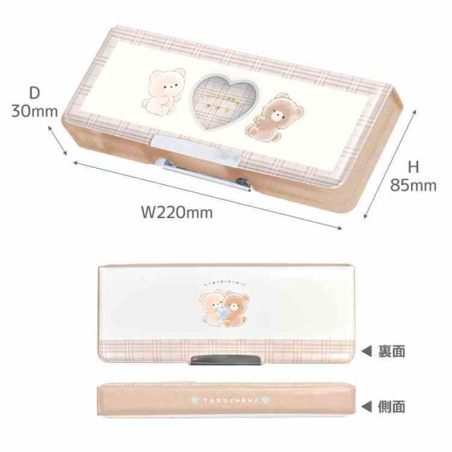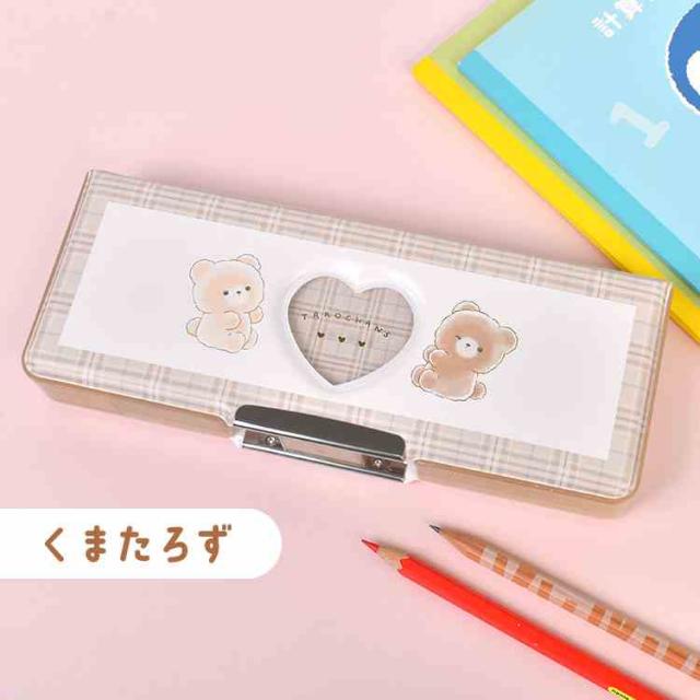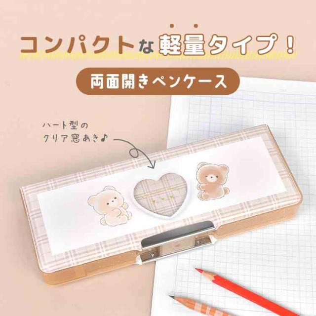 筆箱 両面開き ペンケース 箱型 小学生 女の子 かわいい おしゃれ 小学校 1年生 入学 準備 新学期 低学年 コンパクト 軽量 スリム 文具 キャラクター くま 鉛筆削り 時間割カード クリア窓 ブラウン くまたろず シンプル 大容量 通学 新入学 女子 入学祝い プレゼント ギフト