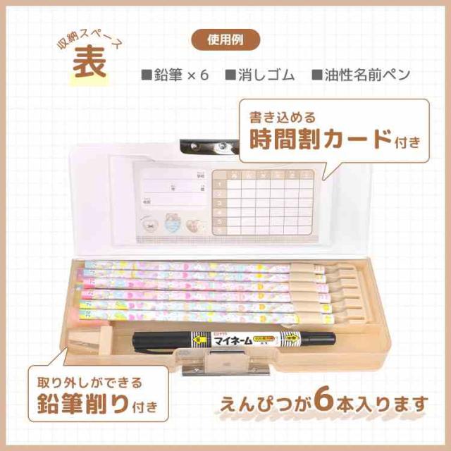鉛筆削りや時間割カードなど定番の機能もバッチリ揃った軽量の両面開きペンケース。荷物が多いお子様にも嬉しい、ランドセルにぴったり収まるコンパクトサイズです。鉛筆6本や油性ペン、三角定規などもしっかり収納◎新入学・新学期の準備におすすめです!