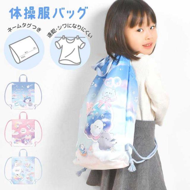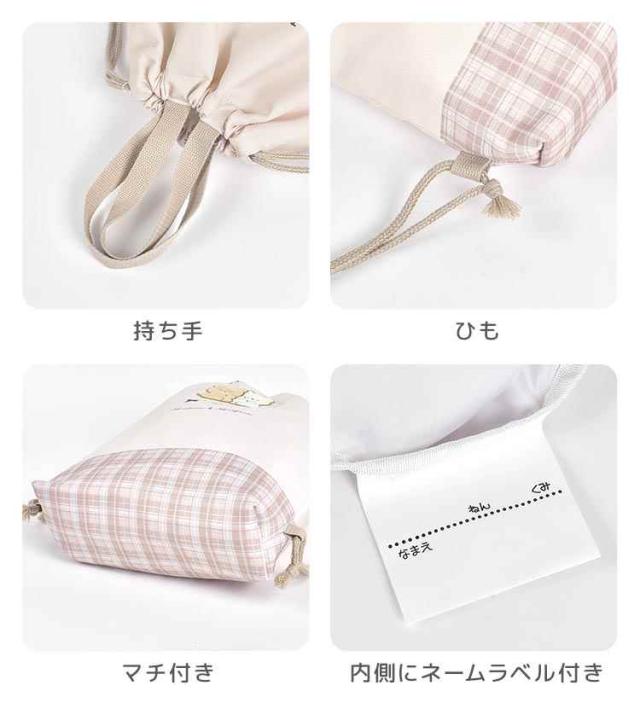 ナップサック 体操服袋 女の子 小学生 おしゃれ 巾着袋 かわいい ランドセルの上から 体育バッグ 入学祝い 小学校 低学年 入園準備 幼稚園 キッズ 子供 新学期 習い事 お着替え袋 給食袋 通塾 持ち手付き 保育園 社会見学 遠足 くま シマエナガ ワンポイント ワッペン グレー