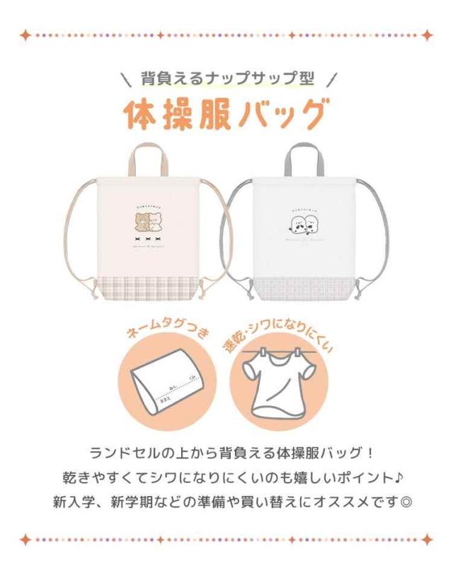 Details 【体操服バッグ】 ランドセルの上から背負えるナップサック型のバッグ。乾きやすくてシワになりにくいのも嬉しいポイント◎内側にネームラベルがついているので紛失防止になります。8cmのマチなので体操服だけでなく教科書やノートもしっかり収納できます。くま、しまえながのワンポイントワッペンが可愛い♪新入学、新学期などの準備や買い替えにおすすめです◎ 品番 125128/125129 サイズ 約H400×W330×D80mm 重量 約117g 素材 ポリエステル 生産国 中国 ご注意 ※表記サイズより、多少の誤差があることがございます。 ※商品の画像はできる限り実物に近づけるよう配慮しておりますが、お使いのモニターやご覧になる環境によりましてはカラーの見え方に差が出る場合がございます。ご了承くださいませ。 ※メール便発送の場合タグを切ってパッケージから出して発送する場合があります。ご了承くださいませ。 関連キーワード ナップサック 体操服袋 女の子 小学生 おしゃれ 巾着袋 かわいい ランドセルの上から 体育バッグ 入学祝い 小学校 低学年 入園準備 幼稚園 キッズ 子供 新学期 習い事 お着替え袋 給食袋 通塾 持ち手付き 保育園 社会見学 遠足 くま シマエナガ ワンポイント ワッペン グレー 小学一年生 こども 園児 運動着入れ 体操着袋 レッスンバッグ マチ付き 軽量 ブラウン キャラクター 動物 プールバッグ 学童 新入学 防災 くまたろず しまたろず たろちゃんず アニマル 2024 2025 名前スペース付き 4歳 5歳 6歳 7歳 8歳 小学 1年 2年 一年 二年 生 保育所 先生 学校 入学 準備 ジュニア 娘 孫 女性 ガールズ レディース girl バースデー 誕生日 プレゼント プチ ミニ ギフト お返し 粗品 景品 送別会 イベント クリスマス クリスマスプレゼント ホワイトデー お洒落 可愛い シンプル | |||||||||||||||||||||||