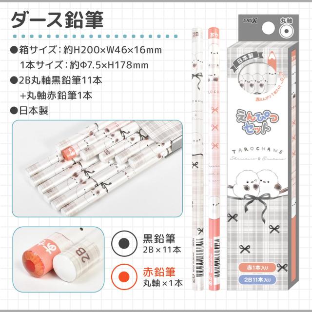 ・ダース鉛筆:1本約Φ7.5×H178mm、2B丸軸黒鉛筆11本、丸軸赤鉛筆1本、日本製