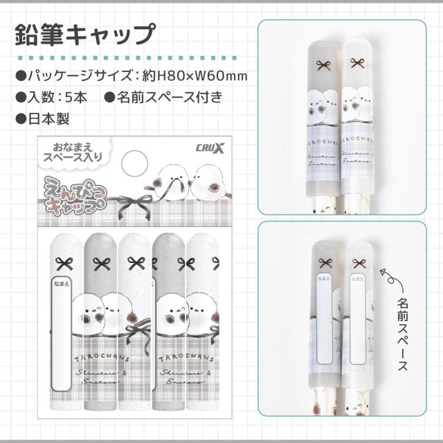 ・鉛筆キャップ:パッケージサイズ約H80×W60mm、入数5本、名前スペース付き、日本製