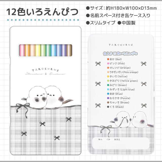 ・色鉛筆(12色):約H180×W100×D13mm、名前スペース付き缶ケース入り、スリムタイプ、中国製