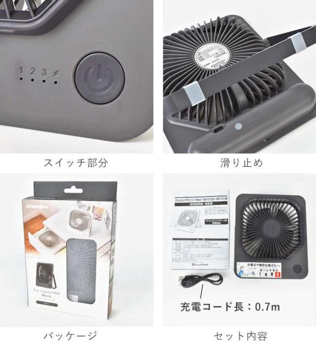 卓上扇風機 卓上ファン USB 充電式 静音 コードレス オフィス 薄型 DCモーター ドウシシャ FSA-1012 コンパクトファン ミニ扇風機 デスクファン スリムファン 携帯ファン 小型扇風機 スタンド式 吊るす 壁掛け 強風 角度調節 小さい 静か DOSHISHA おしゃれ シンプル 可愛い