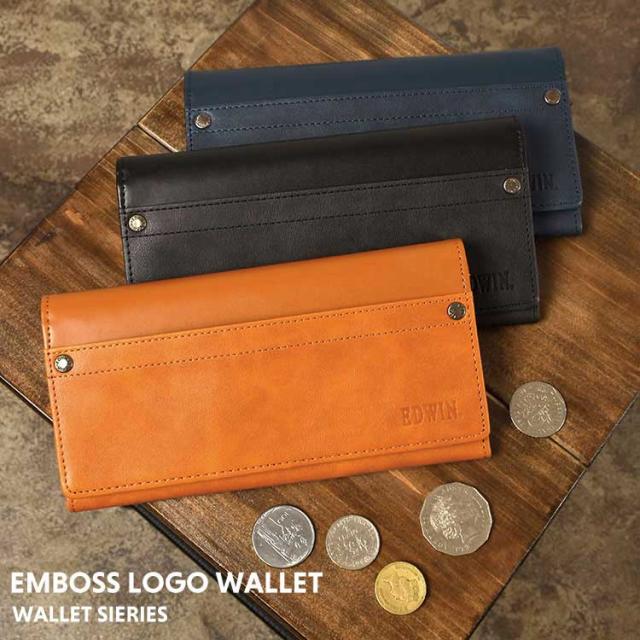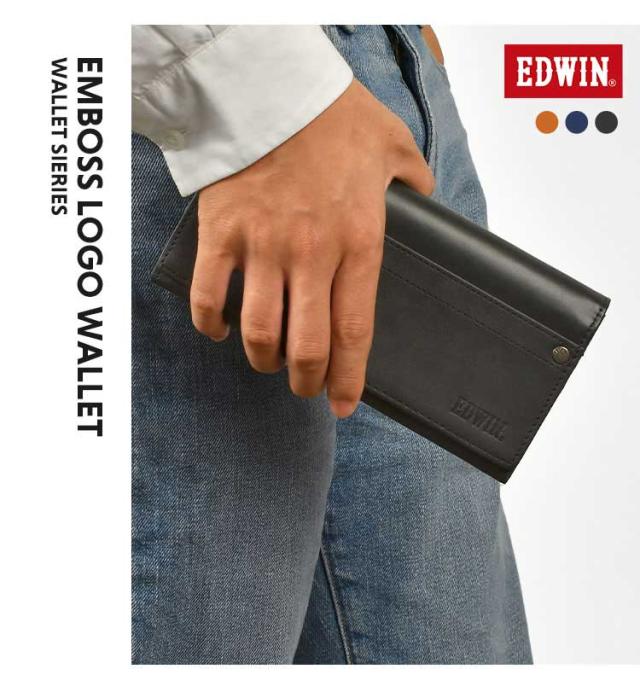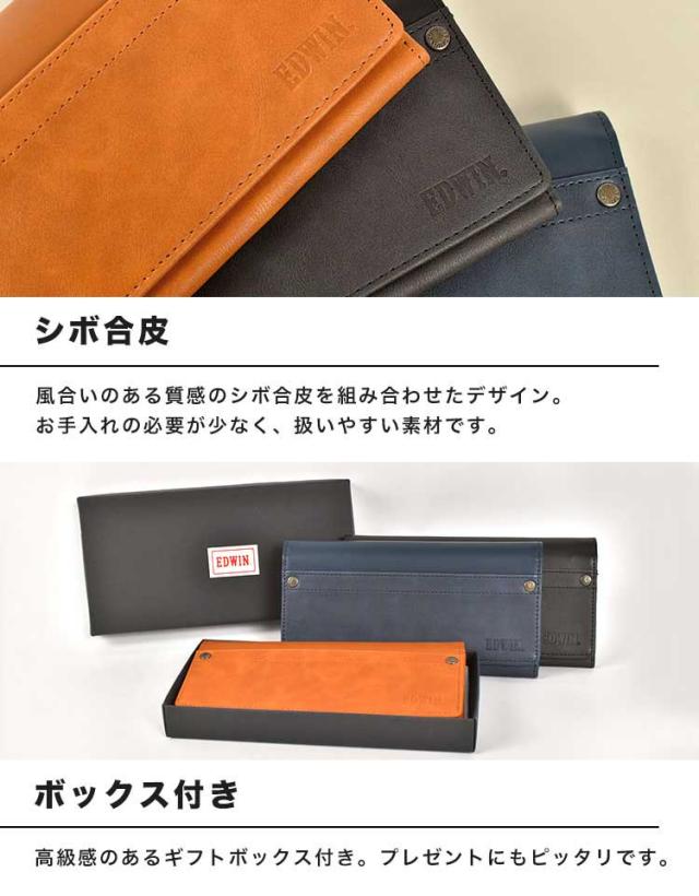 長財布 メンズ ブランド おしゃれ エドウィン EDWIN 財布 長サイフ 大容量 薄い 小銭入れあり 合皮 入学祝い ギフト プレゼント レザー 紳士 ビジネス 通勤 通学 新社会人 父の日 中学生 高校生 大学生 ロゴ ワンポイント ウォレット 人気 ブラック ネイビー キャメル 箱入り
