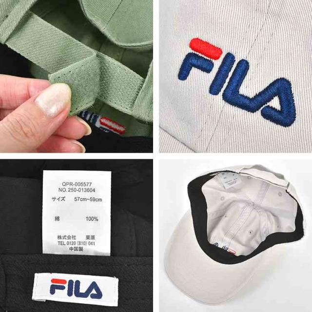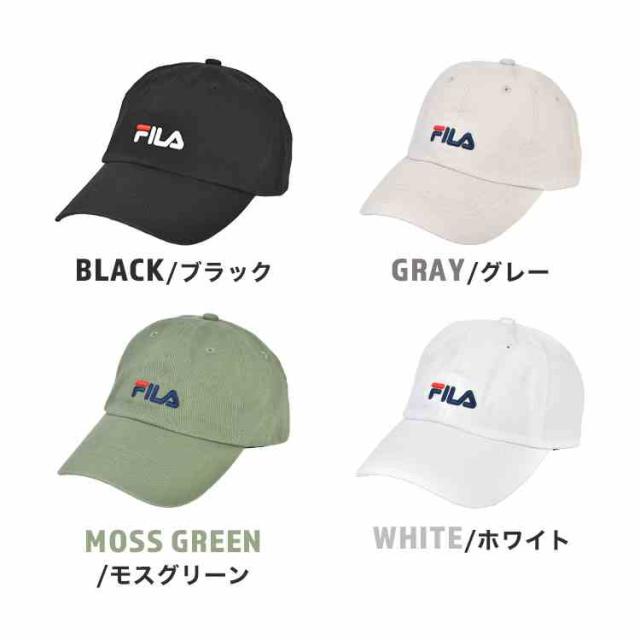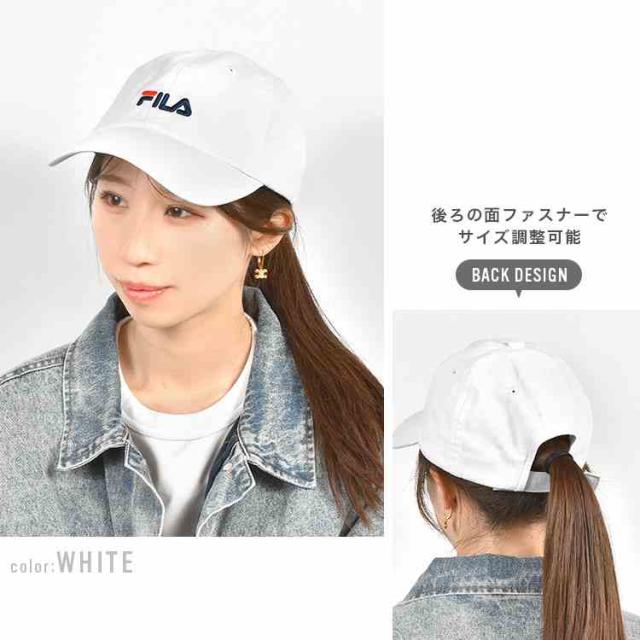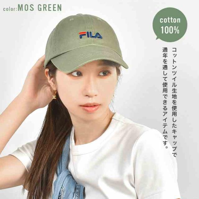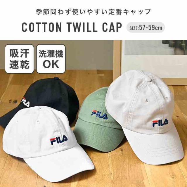 キャップ FILA フィラ 帽子 レディース コットン おしゃれ 洗える 綿 100% 吸汗速乾 ロゴ 大人 女性 ゴルフ カジュアル シンプル かわいい 定番 洗濯機OK サイズ調整 無地 ブラック 黒 ホワイト 白 グレー グリーン ベースボールキャップ 春夏 日除け 紫外線対策 秋冬 通年