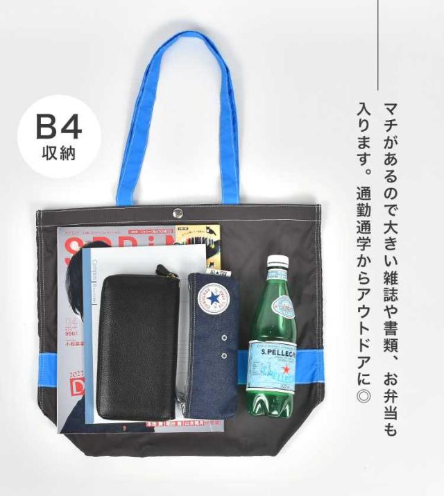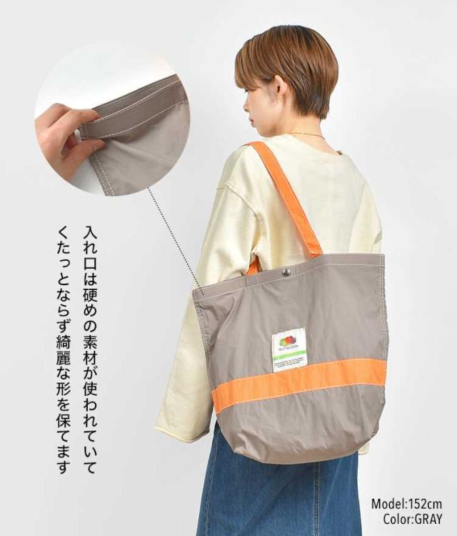 ラインがアクセントになったナイロントートバッグ。バイカラーのおしゃれ配色で男女ともに使いやすい◎入れ口は硬めの素材が使われていて、くたっとならず綺麗な形を保てます。
