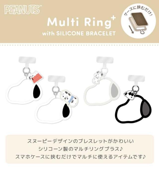 スマホストラップ 手首 スヌーピー シリコンブレスレット マルチリングプラス ハンドストラップ シリコーン かわいい おしゃれ ジョークール ピーナッツ シンプル 女性 シリコンリング SNOOPY PEANUTS グッズ 腕輪 挟むだけ スマホアクセサリー ホルダー 高校生 中学生 黒 白