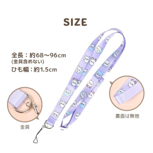 大人気のちいかわキャラクターたちが勢揃いしたネックストラップ!スマートフォンや携帯ゲーム機に簡単に取り付けられ、外出時の紛失防止に役立ちます。長さ調節が可能なので、お好みの長さに合わせてお使いいただけます。また、強い力が加わると分離する安全パーツ付きです。