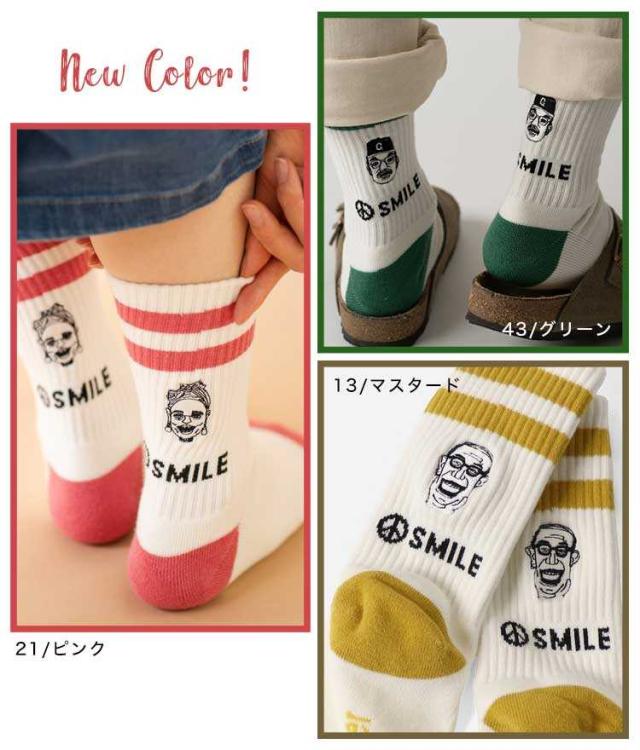 見つけた人も思わず笑顔になっちゃう!?楽しい『SMILE』が刺繍された、個性的なソックスが登場♪抗菌防臭加工がされており、足裏はふわふわのパイル生地で履き心地も抜群!ポップなデザインは日常使いはもちろんフェスやアウトドアシーンのオシャレにもピッタリ。男女問わずプレゼントやギフトにも喜ばれるアイテムです。