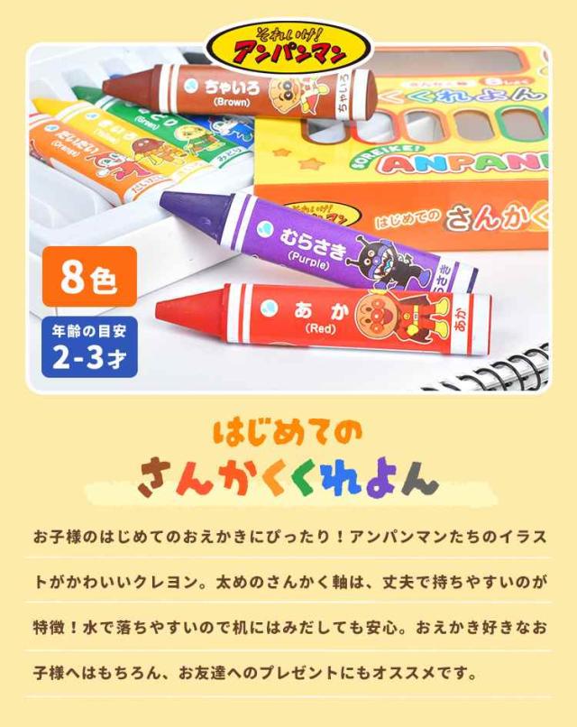 クレヨン 子ども はじめてのさんかくくれよん アンパンマン 8色 キャラクター 子供 幼児 水で 落とせる 落ちやすい 三角軸 おもちゃ 幼稚園 保育園 通園 お絵描き 塗り絵 室内遊び 2歳 3歳 4歳 誕生日 入園 お祝い 入園準備 孫 プレゼント マイファーストセイカ 1900009A