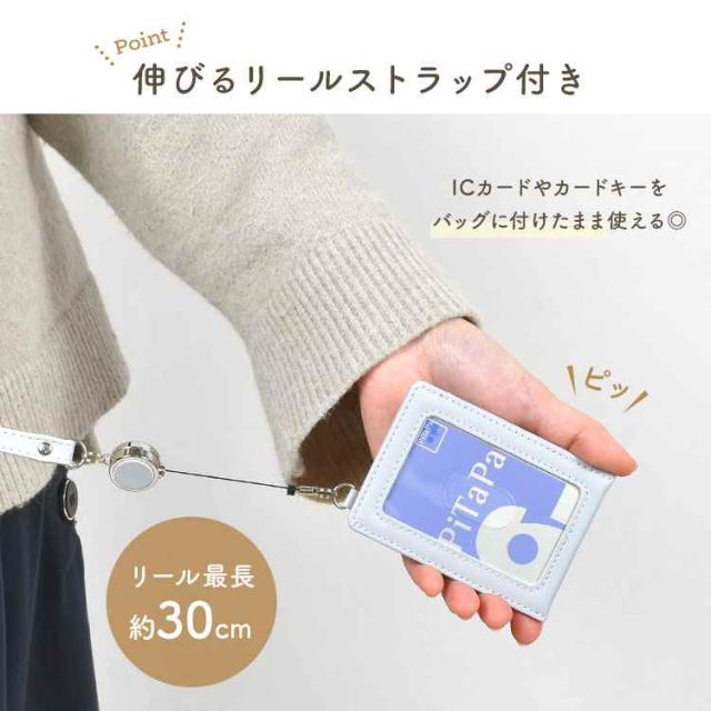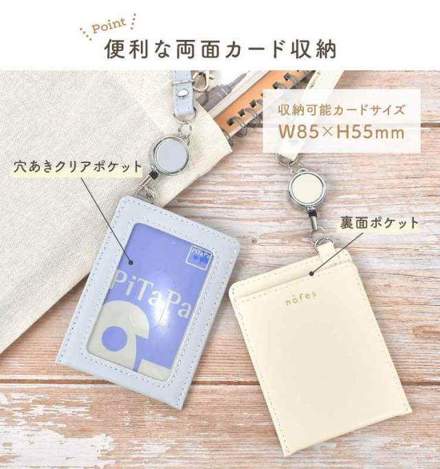 パスケース 定期入れ レディース リール付き ノフェス おしゃれ かわいい 大人 女性 ICカード 2枚 薄型 伸びる ストラップ 女子 高校生 大学生 シンプル 合皮 窓付き 縦型 両面 カードケース 通勤 通学 ICカード入れ 定期券入れ キャメル ブルー ピンク アイボリー 紛失防止