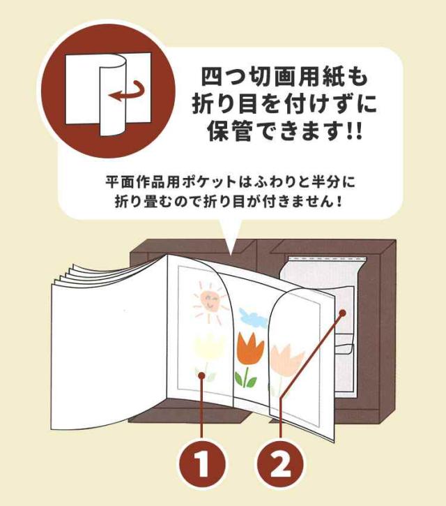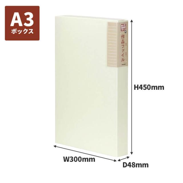 お子さまの作品をまとめて保管できる!四つ切画用紙サイズを折り目を付けずに収納できる作品ファイル(A3ボックス)。八つ切画用紙はもちろん、四つ切画用紙を14枚収納可能!ポストカードや厚みのあるものを収納できる小物用ポケットも付いているので、これひとつでお子さまの思い出をまとめられます♪大人の絵画作品も収納できるので、ご自身のポートフォリオ用にもオススメです◎