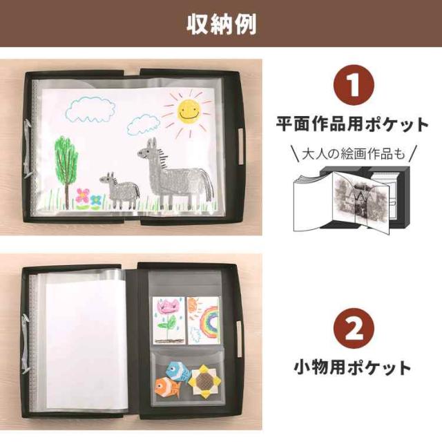 子供 作品 収納 ボックス ケース 作品ファイル 作品収納ケース A3 四つ切画用紙 習字 写真 思い出 保存 作品入れ 収納ボックス 書道 ポートフォリオ メモリアルボックス 賞状ファイル 大容量 丈夫 持ち手付き ブラック ホワイト 図工 保管 子ども 幼稚園 保育園 小学校