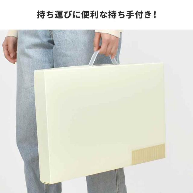 Details 【作品ファイル】 お子さまの作品をまとめて保管できる!四つ切画用紙サイズを折り目を付けずに収納できる作品ファイル(A3ボックス)。八つ切画用紙はもちろん、四つ切画用紙を14枚収納可能!ポストカードや厚みのあるものを収納できる小物用ポケットも付いているので、これひとつでお子さまの思い出をまとめられます♪大人の絵画作品も収納できるので、ご自身のポートフォリオ用にもオススメです◎ 品番 SF-A302 サイズ 約H450×W300×D48mm 重量 約700g 素材 ボックス、ポケット:PP 持ち手:PE 生産国 中国 ご注意 ※表記サイズより、多少の誤差があることがございます。 ※商品の画像はできる限り実物に近づけるよう配慮しておりますが、お使いのモニターやご覧になる環境によりましてはカラーの見え方に差が出る場合がございます。ご了承くださいませ。 関連キーワード 小学校 中学校 高校 大学 小学生 中学生 高校生 大学生 保育園 保育所 幼稚園 学校 入園 入学 卒業 卒園 子ども 子供 こども キッズ ジュニア 息子 娘 孫 女性 女子 女の子 ガールズ レディース girl 男性 男子 男の子 ボーイズ メンズ boy バースデー 誕生日 プレゼント プチ ミニ ギフト お祝い お返し 粗品 景品 送別会 イベント おしゃれ オシャレ お洒落 かわいい 可愛い カワイイ シンプル 子供 作品 収納 ボックス ケース 作品ファイル 作品収納ケース A3 四つ切画用紙 写真 思い出 保存 作品入れ 収納ボックス ポートフォリオ メモリアルボックス 賞状ファイル 大容量 丈夫 持ち手付き ブラック ホワイト 図工 CD DVD データ 保管 作品入れ 作品ボックス 作品ケース 収納ケース 作品収納ボックス シンプル 黒 白 美術 絵画 図工 工作 習字 折り紙 通知表 整理 整頓 便利 隙間 押入れ収納 | |||||||||||||