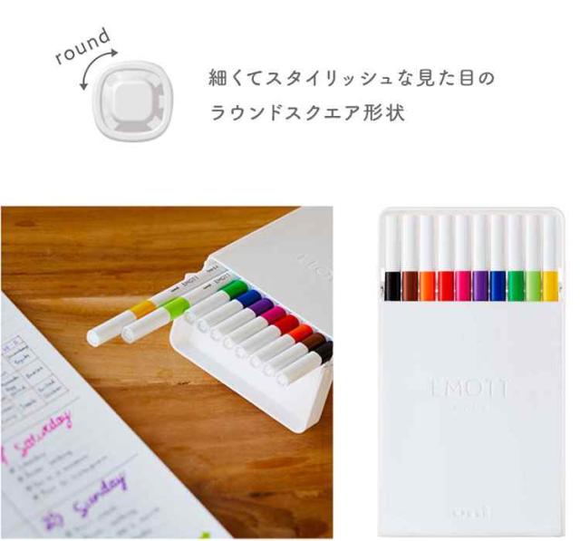 サインペン 水性 おしゃれ エモット emott uni シンプル 勉強垢 べんきょう垢 人気 文具 色ペン 細字 PEN 10色セット パステル ナチュラル カラフル 可愛い ケース付き カラーペン マーカー 学生 中学生 高校生 多彩 学校 受験 大学生 筆記具 絵 イラスト 水性ペン 新入学