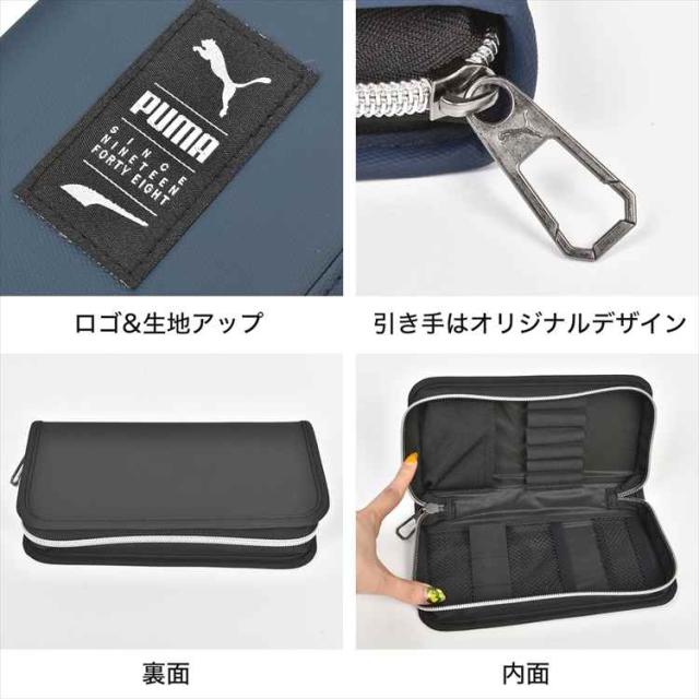 ペンケース PUMA プーマ 筆箱 小学生 男の子 男子 中学生 高学年 PM570 シンプル 黒 青 ブラック ネイビー ブルー コンパクト スリム ブック型 ブックタイプペンケース ペンポーチ ペンホルダー 多機能 かっこいい おしゃれ スポーツ ブランド 文房具 文具 収納 入学 新学期