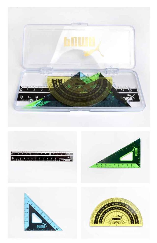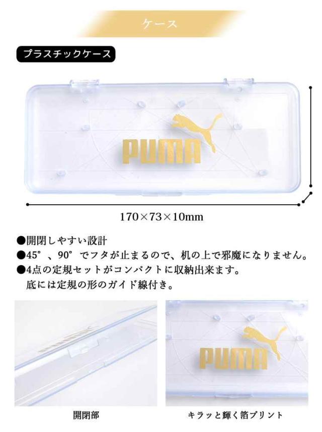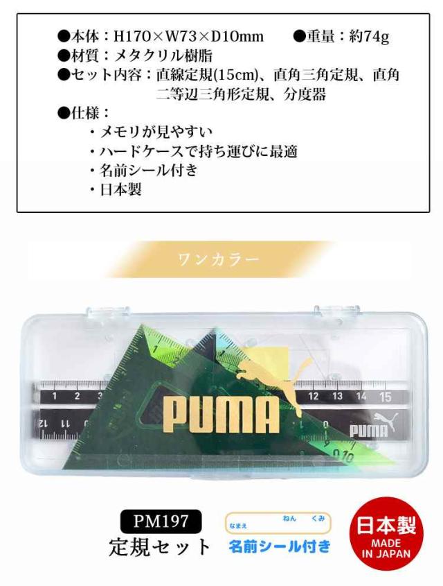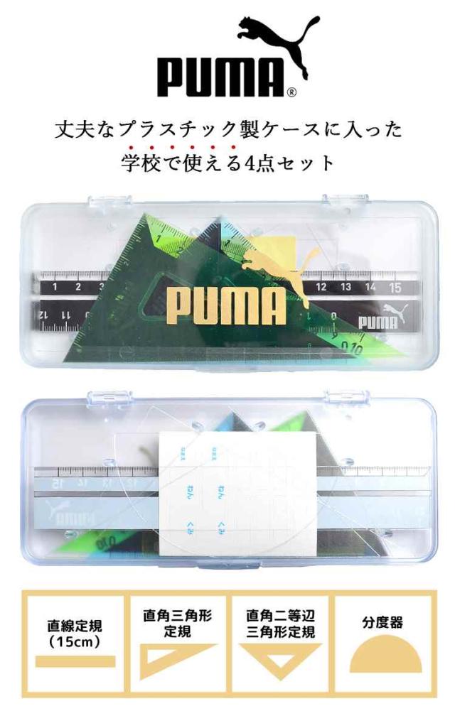 定規セット ケース付 直線定規 三角定規 分度器 PM197 PUMA プーマ クツワ 直角定規 メモリが見やすい 丈夫 かっこいい 小学1年生 入学 新学期 入学準備 小学生 プレゼント 筆記用具 文房具 文具 子供 キッズ ブランド 筆記具 男の子 通園 通学 メール便OK