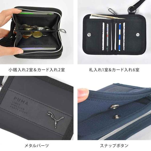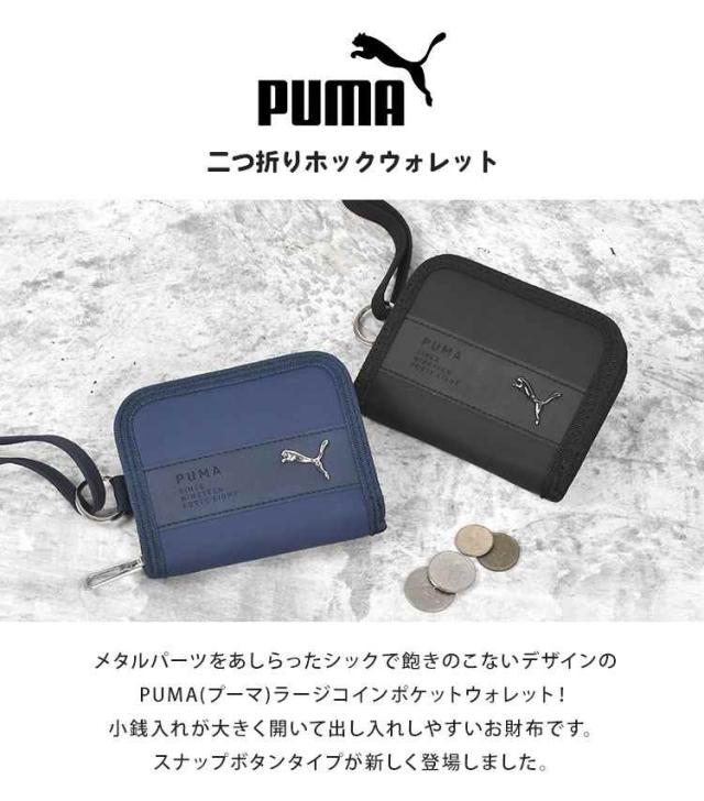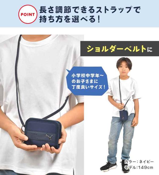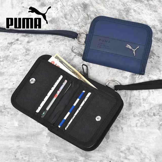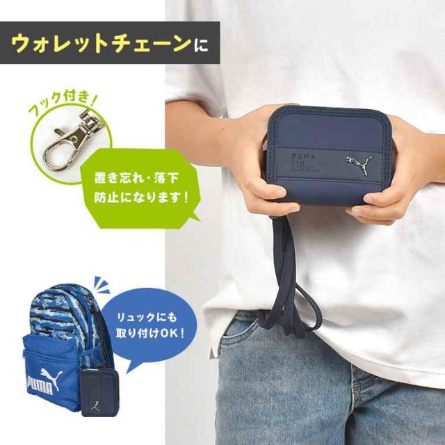 財布 PUMA プーマ キッズ 男の子 小学生 ストラップ 子供 二つ折り 紐付き フック付き 首掛け パスケース キーケース ウォレット サイフ 男子 通学 小銭入れ カードポケット 中学生 かっこいい シンプル 黒 紺 ブラック ネイビー 新学期 高学年 ファスナー スナップボタン