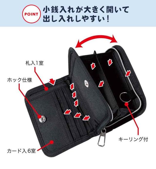 小銭入れが大きく開いて出し入れしやすいPUMAの二つ折りホックウォレット。メタルパーツをあしらったシックで飽きの来ないデザインです。落下・紛失防止になるストラップ付きだからお子様に安心◎ベルトループに通してウォレットチェーンとして使ったり、リュックに付けることもできます。カードは小銭入れ部分も合わせて8枚収納ポケットがあります。ブラックとネイビーの2色展開です。