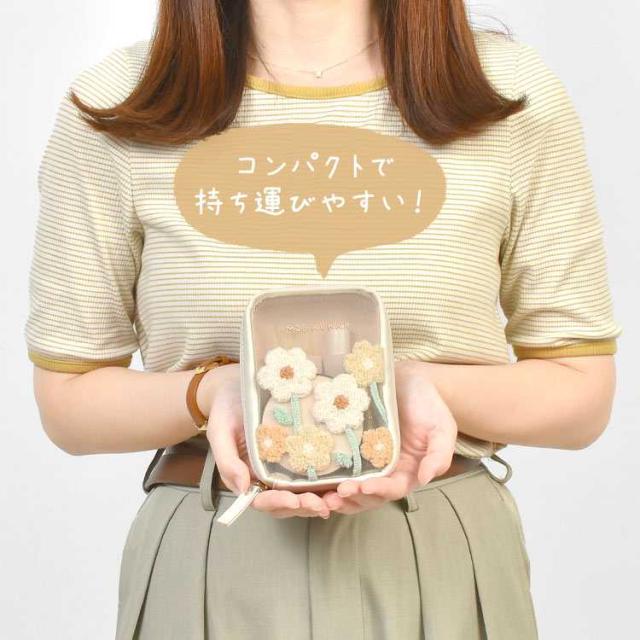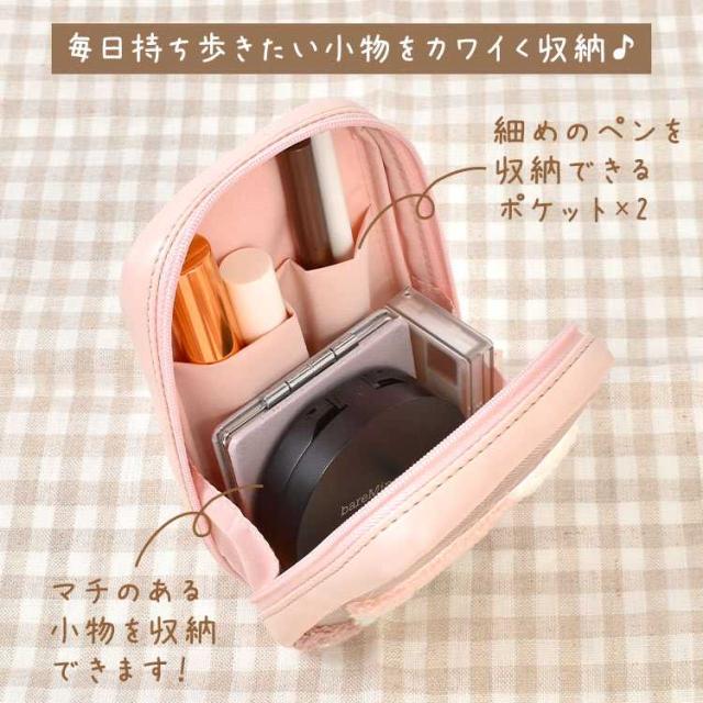 コスメやお薬、モバイルバッテリーなど、毎日持ち歩きたい小物をまとめて収納できるサイズ感。内側に細めの筆やペンを収納できる内ポケット付き。コンパクトなのでバッグにもすっきり収まり、持ち運びにも便利です。