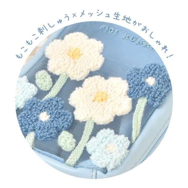 もこもこのサガラ刺繍と、ほどよく中身が透けるメッシュ生地の組み合わせがおしゃれで、使うたび気分が上がります♪