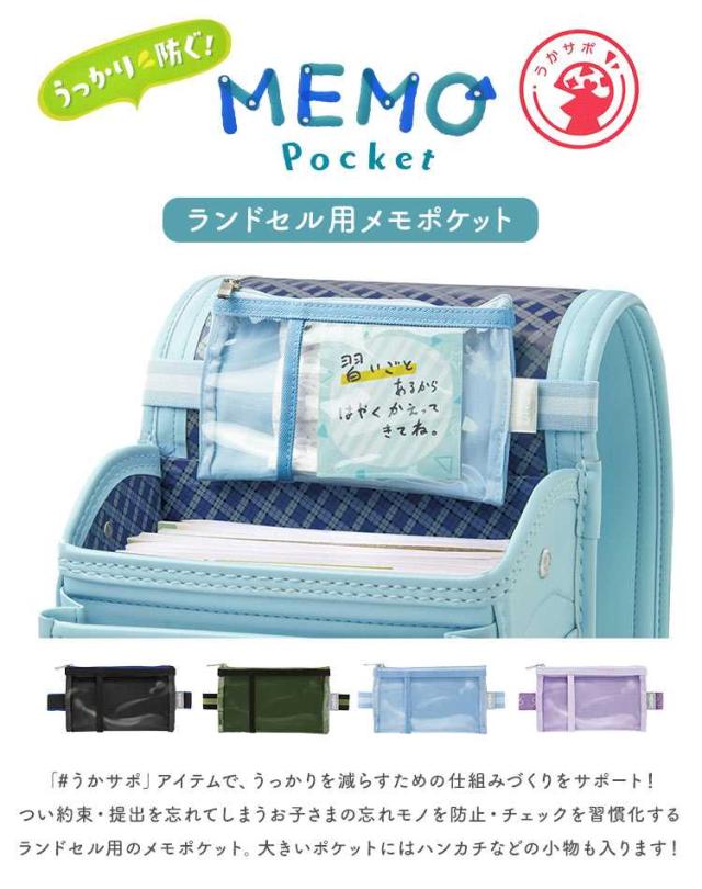 メモポケット ランドセル用 忘れ物防止ポケット 子供 小学生 忘れ物チェッカー ランドセルポケット 小物入れ インナーバッグ 女の子 男の子 こども うかサポ うっかりサポート グッズ メモ入れ 伝言ポーチ ケース 時間割ポケット 透明 通学 入学 準備 黒 紫 緑 水色 GS-5557