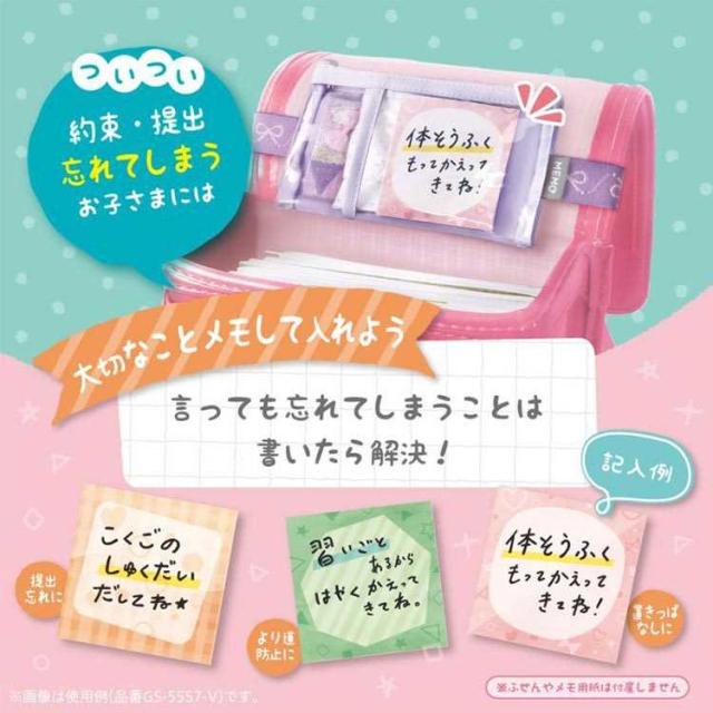 ランドセル用メモポケットは、約束や提出物を忘れがちな子どもたちにぴったりのアイテムです!ランドセルのカブセに簡単に装着できるので、手間いらず。小ポケットと大ポケットがあり、メモだけでなく小物入れとしても活用できます。毎日の学校生活をもっとスムーズに、そして楽しくサポートしてくれる頼もしいアイテムです。