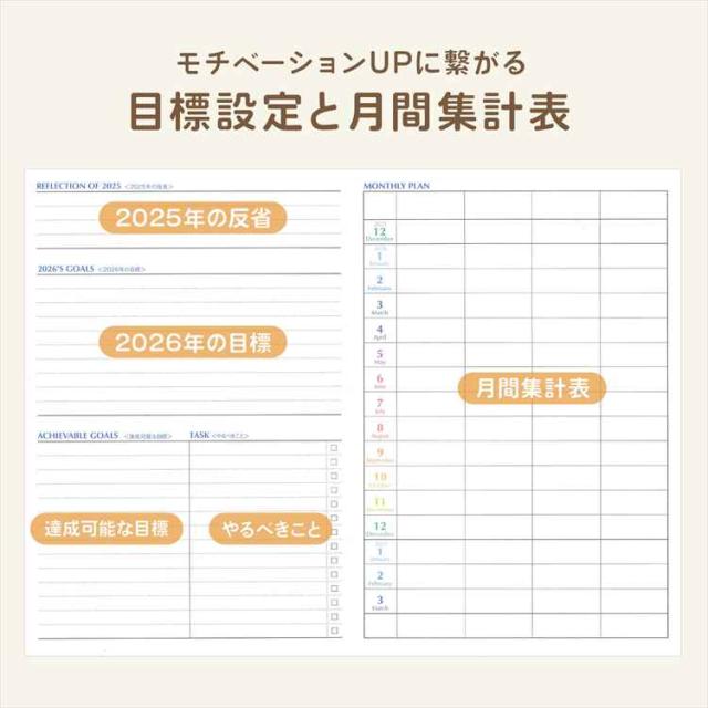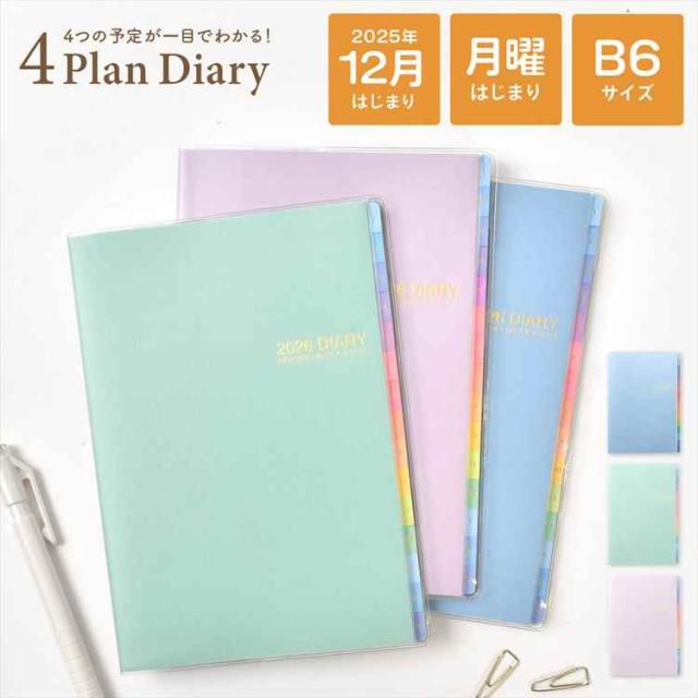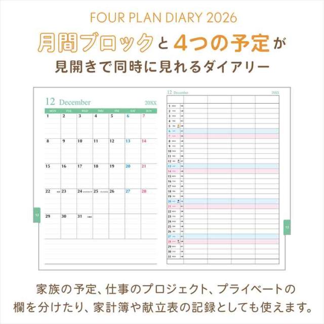 手帳 2026年 B6 マンスリー ダイアリー フォープランダイアリー 12月始まり 1月始まり 4月始まり スケジュール帳 レイメイ藤井 家族手帳 ノート 家計簿 管理 仕事 大人 女性 月曜始まり 月間 1ヶ月 デイリー 4項目 薄い スリム コンパクト 小さめ シンプル かわいい おしゃれ