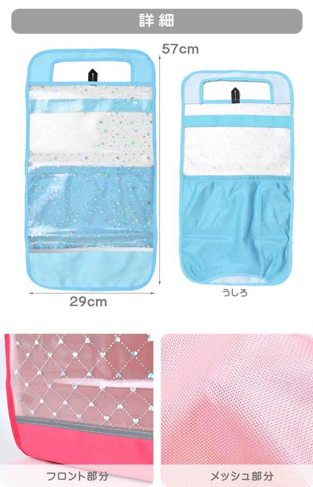 | 仕様 | ◇カバー表面生地にはキラキラプリント入り透明TPU素材を使用 ◇夜道でも安心のキラキラプリント&反射材付き ◇裏面ポケットには通気性抜群のメッシュ生地を使用 |
