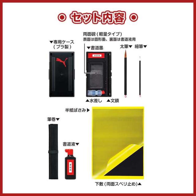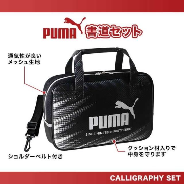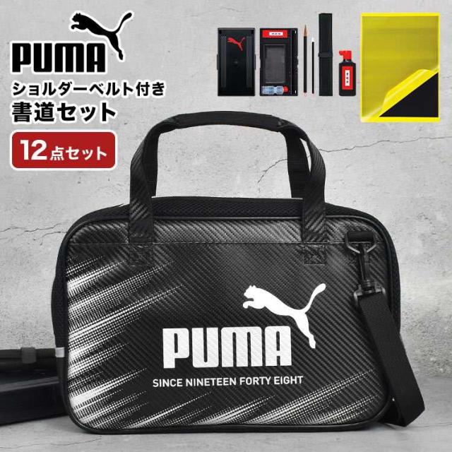 書道セット 男の子 小学生 小学校 プーマ PUMA 習字セット ショルダーバッグ 書写セット 習字道具セット かっこいい シンプル 黒 ブラック 習字バッグ 書道バッグ 習字道具 筆 墨汁 硯 文鎮 筆巻 下敷 半紙ばさみ 国語 スポーツ 中学生 男子 子供 入学祝い 新学期準備 クツワ