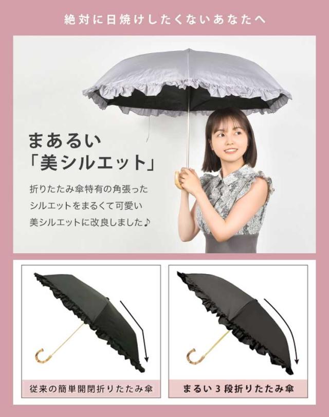 【まあるい3段 折り日傘 完全遮光100%】