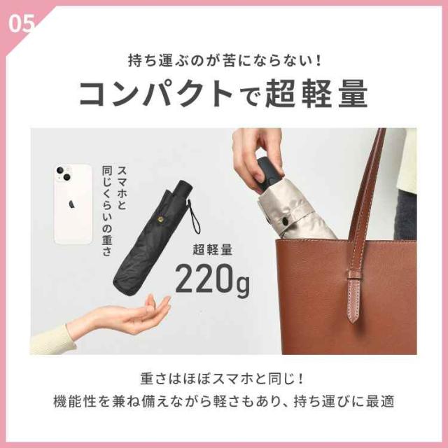 超軽量でコンパクト!傘を開くのも閉じるのもワンタッチ!荷物が多い時や急な雨でも片手で開閉可能なpink trickの自動開閉日傘。親骨は軽くて丈夫なグラスファイバーを使用。弾力性があるので強風の日も安心。傘の内側にブラックコーティングを施しているので紫外線はもちろん、地面からの照り返しも吸収します。生地には撥水加工が施してあるので晴れの日だけでなく、雨の日もOK!