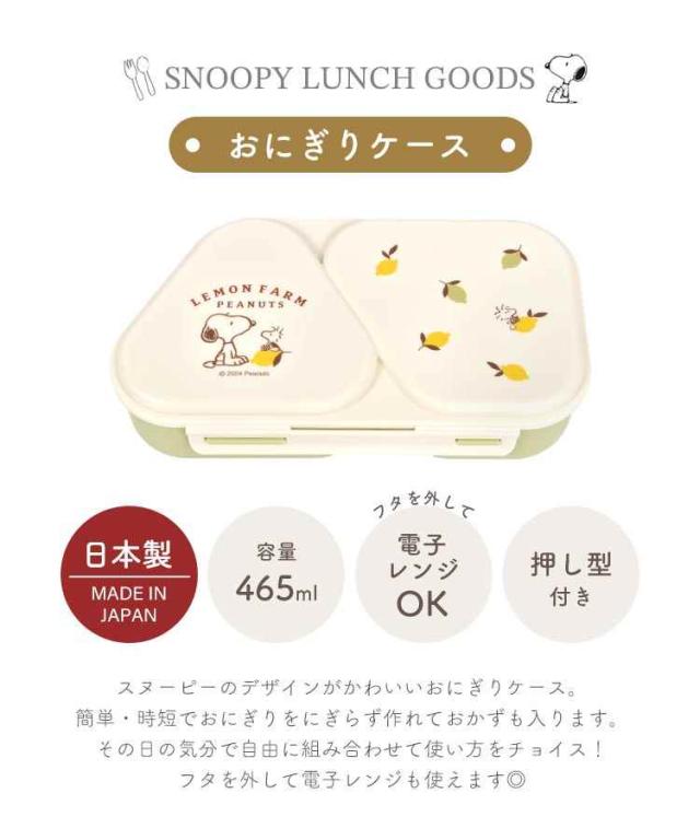 おにぎり ケース 弁当箱 ランチボックス スヌーピー SNOOPY レンジ対応 日本製 かわいい おしゃれ おむすび 2個 お弁当 おかずも入る 子供 大人 女子 小学生 中学生 高校生 押し型 おにぎりメーカー おむすびケース 簡単 時短 女の子 男の子 キャラクター グッズ 通勤 通学