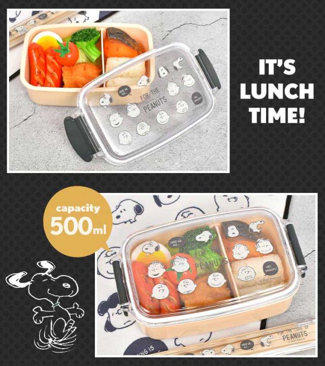 弁当箱 女子 大人 一段 スヌーピー ランチボックス 小学生 子供 女の子 1段 お弁当箱 500ml 日本製 レンジ対応 抗菌 仕切り 四角 透明 ベージュ ブラック ホワイト モノクロ かわいい シンプル おしゃれ SNOOPY PEANUTS ランチ グッズ キャラクター 中学生 高校生 遠足 人気