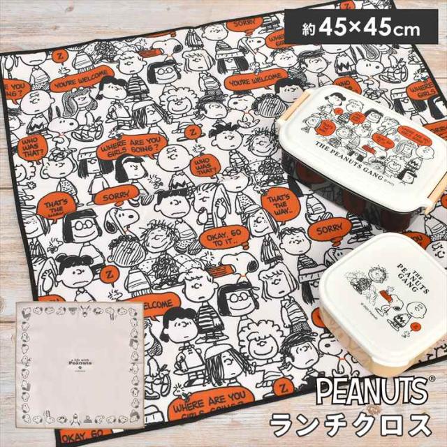 スヌーピーと仲間たちのデザインが可愛い!ポリエステル100%でシワになりにくいランチクロス。お揃いのランチグッズを揃えて使っても◎