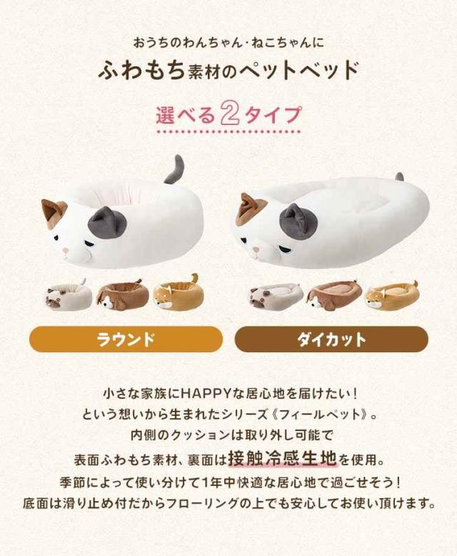 小さな家族にHAPPYな居心地を届けたいという想いから生まれたシリーズ、フィールペット。内側のクッションは取り外し可能で表面ふわもち素材、裏面は接触冷感生地を使用。季節によって使い分けて1年中快適な居心地で過ごせそう!底面は滑り止め付きだからフローリングの上でも安心してお使いいただけます。