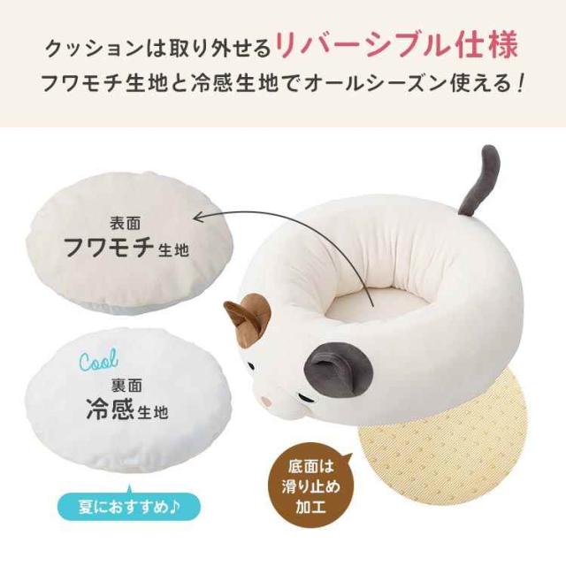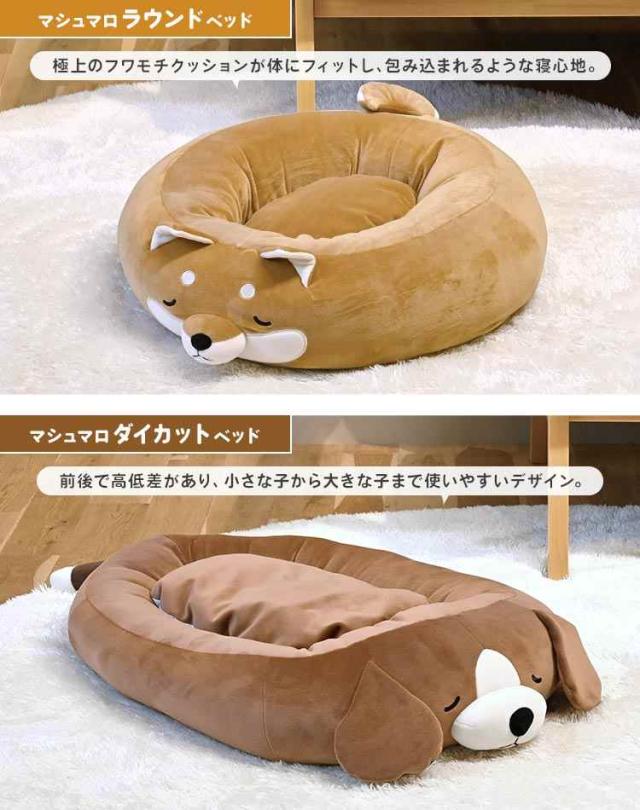 ペット ベッド プレミアムねむねむアニマルズ クール 夏 犬 ひんやり 冷感 洗える 猫 グッズ お昼寝 クッション 枕 リバーシブル 滑り止め付き フローリング マシュマロ ラウンド ダイカット ふわふわ もちもち 室内 休憩 癒し インテリア かわいい おしゃれ イヌ ネコ 丸い