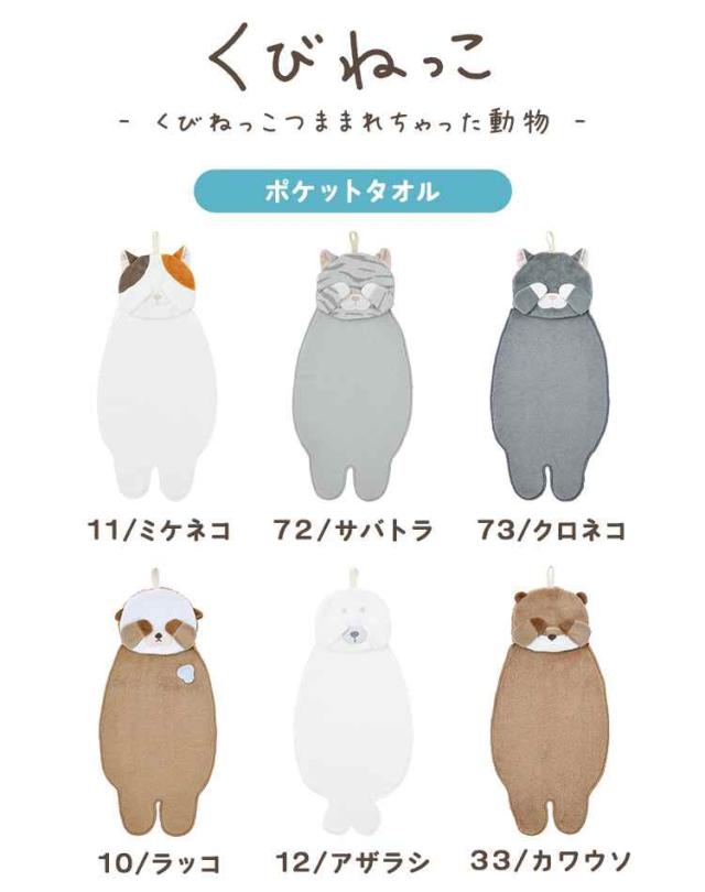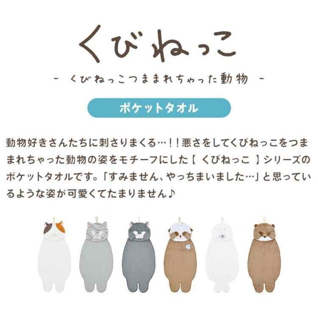 動物好きさんたちに刺さりまくる…!!悪さをしてくびねっこをつままれちゃった動物の姿をモチーフにした [ くびねっこ ] シリーズのポケットタオルです。「すみません、やっちまいました…」と思っているような姿が可愛くてたまりません♪