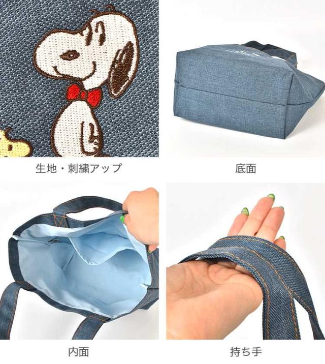 ミニトートバッグ スヌーピー レディース 小さめ ランチトート デニム キャンバストートバッグ SNOOPY かわいい おしゃれ 軽量 内ポケット 丈夫 マチあり 自立 大人 子供 中学生 高校生 女の子 女性 お弁当バッグ キャラクター グッズ シンプル 散歩 通勤 通学 サブバッグ